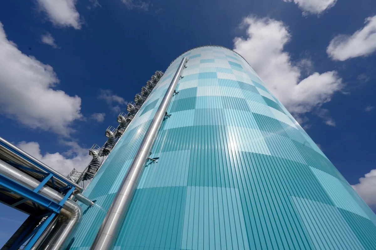 Ein Stück die Unterwarnow hinauf Richtung Warnemünde, vorbei an Fußballstadion und Fischmarkt, ragt die Zukunft 55 Meter in den Himmel. Kreisrund und kariert ist diese Zukunft, in Weiß und Blau-Tönen gehalten, ihre Hülle besteht aus Stahl. In ihrem Inneren: 45 Millionen Liter fast kochend heißes Wasser. Dieses so schlichte wie eindrucksvolle Bauwerk ist der erste sichtbare Schritt, den die Stadtwerke Rostock AG in Richtung der klimaneutralen Wärmeversorgung ihrer Stadt unternommen haben. Denn Rostock hat sich viel vorgenommen: Bis 2035 will die Stadt ihr Fernwärmenetz, das schon jetzt eines der größten der Bundesrepublik ist, CO2-frei beliefern. 2045 soll dann die gesamte von der Stadt benötigte Energie zu 100 Prozent grün sein.
